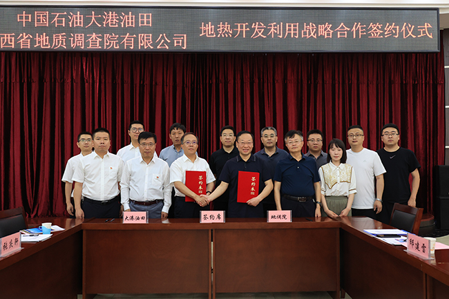 6月13日,山西省地質(zhì)調(diào)查院有限公司與中國石油大港油田公司舉辦簽約儀式,簽訂地?zé)衢_發(fā)利用業(yè)務(wù)戰(zhàn)略合作框架協(xié)議。雙方充分發(fā)揮各自優(yōu)勢圍繞山西省地?zé)崮苜Y源勘查、評價、開發(fā)利用、技術(shù)研發(fā)等領(lǐng)域,建立長期的戰(zhàn)略合作伙伴關(guān)系,共同推動山西省地?zé)豳Y源科學(xué)高效開發(fā)利用。