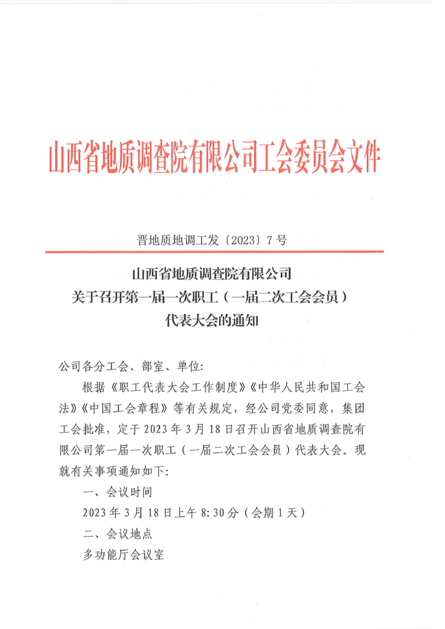 地調(diào)院有限公司關(guān)于召開第一屆一次職工(一屆二次)代表大會通知