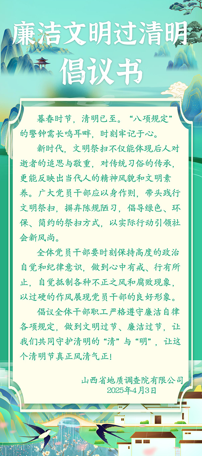 山西省地質(zhì)調(diào)查院有限公司廉潔文明過清明倡議書