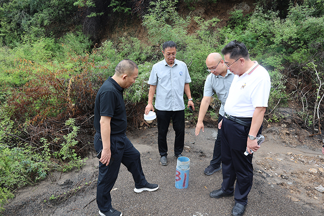 2025年8月21日,山西地質(zhì)集團(tuán)有限公司黨委專職副書記、副董事長(zhǎng)、工會(huì)主席杜玉河,工會(huì)專職副主席張建民一行,赴山西省地質(zhì)調(diào)查院有限公司承擔(dān)的呂梁市交口縣西莊村老窯水污染防控與修復(fù)治理項(xiàng)目現(xiàn)場(chǎng),看望慰問奮戰(zhàn)在生態(tài)治理一線干部職工,并開展汛期安全生產(chǎn)檢查工作。地調(diào)院有限公司黨委副書記、副董事長(zhǎng)、總經(jīng)理韓武波,黨委專職副書記、副董事長(zhǎng)、工會(huì)主席陳巖陪同前往。